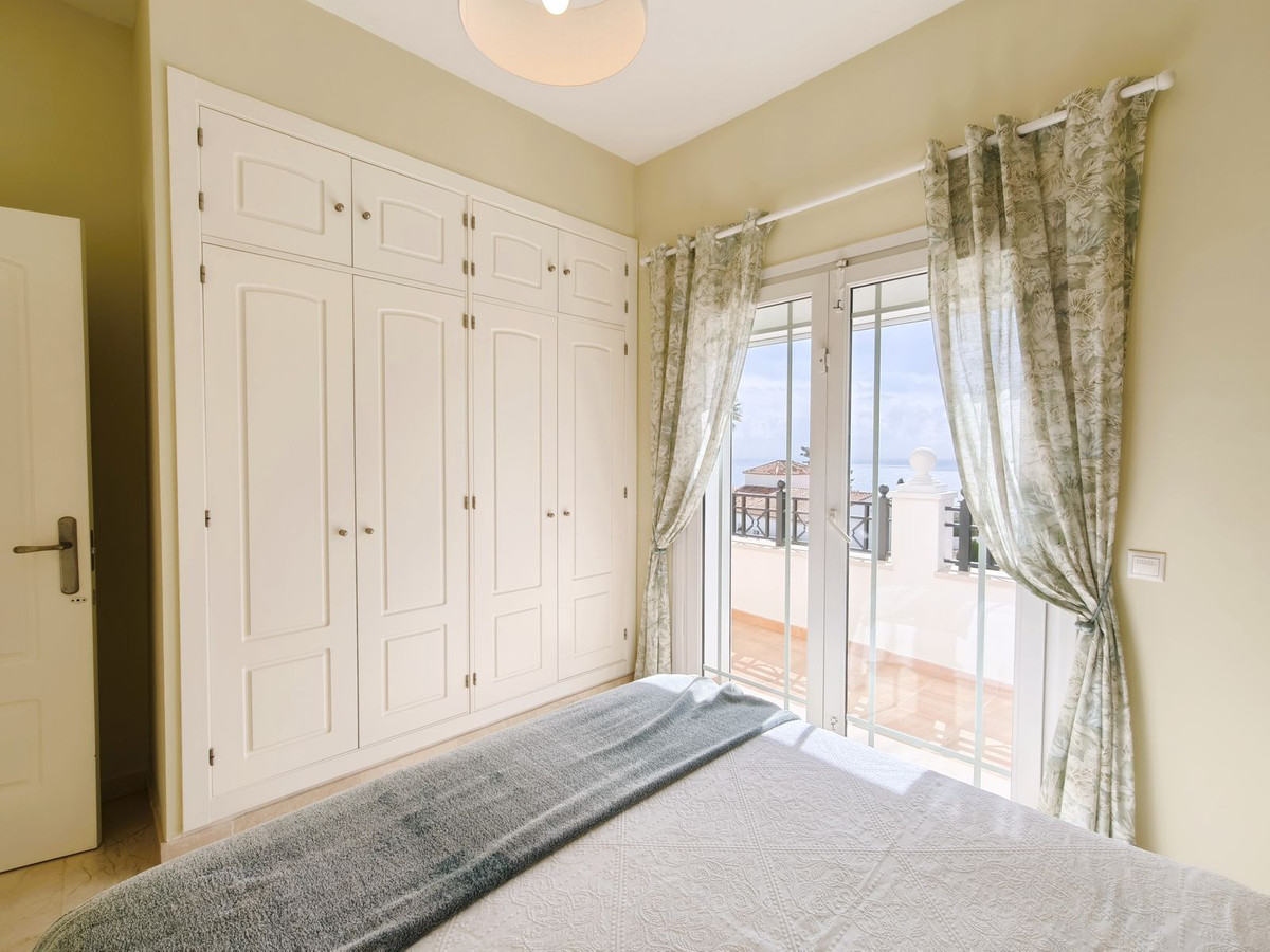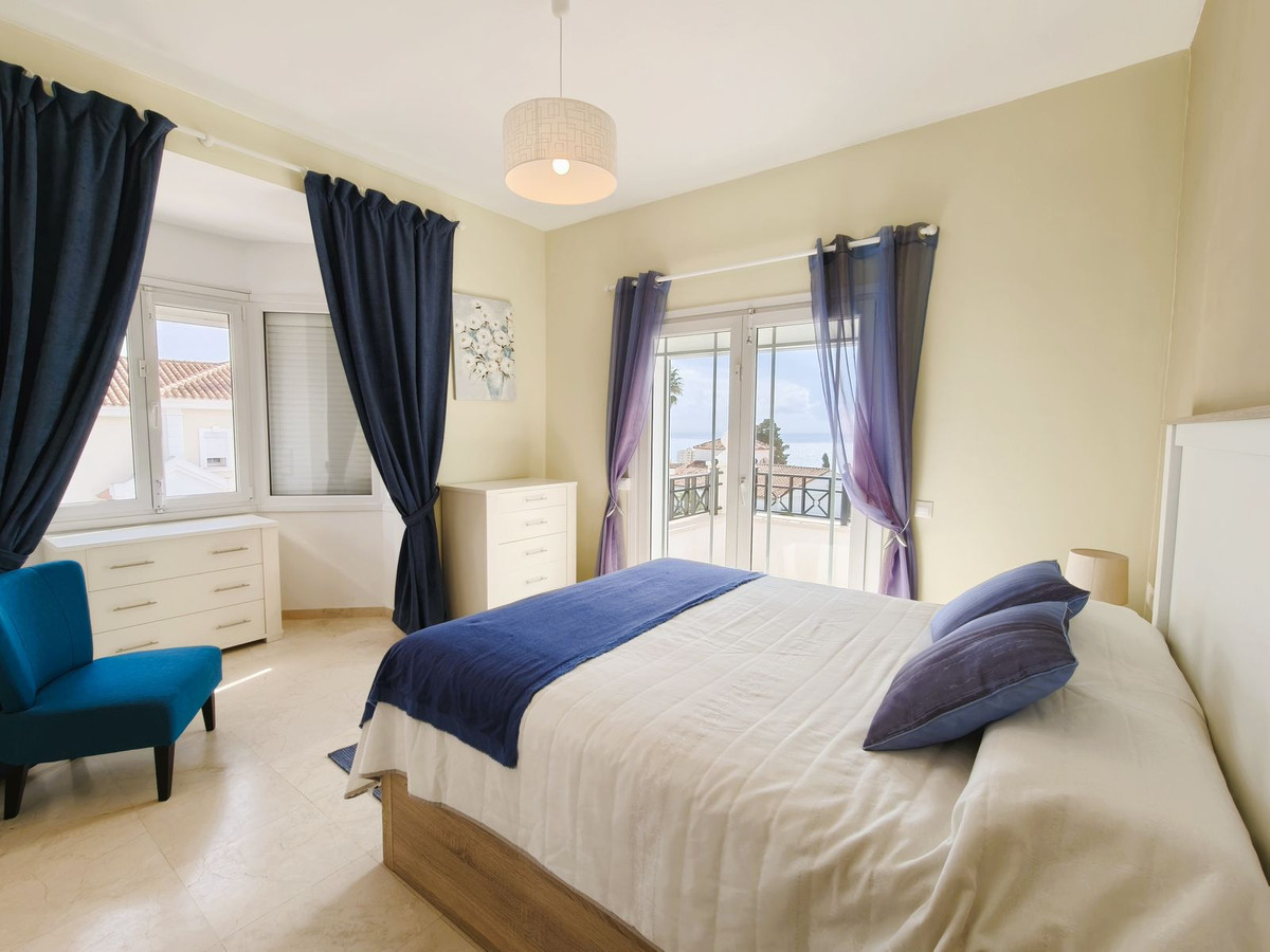 Binnen biedt de woning drie lichte slaapkamers (waaronder een master suite met eigen badkamer), twee complete badkamers en een gastentoilet op de begane grond. De open woon- en eetkamer loopt naadloos over in een volledig uitgeruste keuken met een stijlvol kookeiland, wat een lichte en uitnodigende ruimte creëert met prachtig uitzicht op de zee en de tuin.