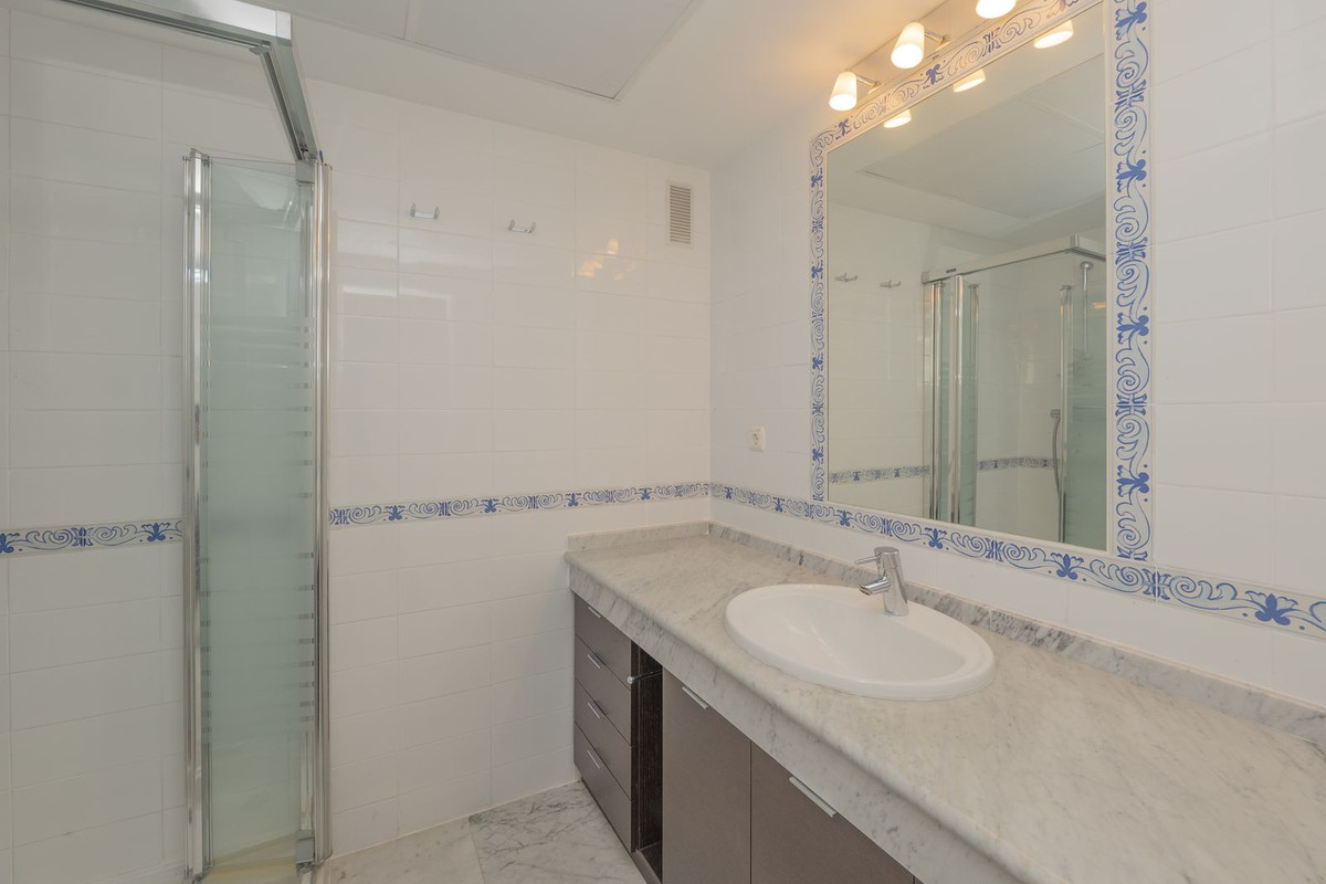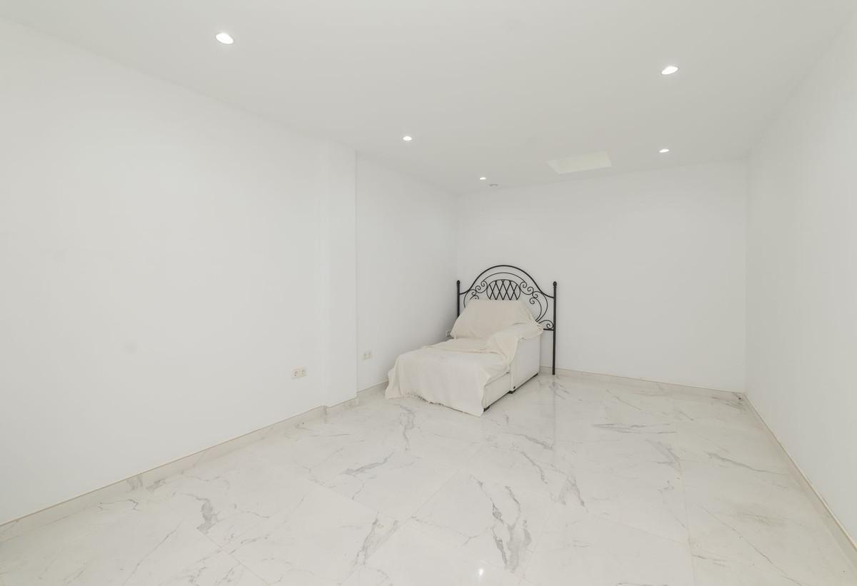 Come and meet the Paradise embodied in this charming Semi Detached House, epithome of a a Rest retreat, a quiet hideout, at a first line beach complex and despite that, tranquil, discreet and with 24/7 security ... at a mere 4km from Marbella downtown and nestled in the renonwned Bahía de Marbella Macro Community. We are talking about a Andalusian Rustic Style complex, with abundance of properly taken care of green areas, witewashed houses, with winding paths that give the impression of having a walk in a traditional Andalusian "Pueblo Blanco". This is a corner unit what increases its privacy and discretion. The dwelling display, determined by the land slide, is as follows: On the "acting" ground floor which happen to be the upper floor we enter to a huge living room, decorated in a minimalist approach what enhances the impression of the size, with a separate dining area and access to the 20sqm terrace, besides a fully fitted kitchen, separated laundry room with an ample storage wardrobe, and a complete bathroom. On the lower level, a distributor hall welcomes us leading to the two main bedrooms, both with access to the private 40sqm garden, and a complete bathroom; besides a third room that can be aimed as a living room or a third bedroom. The complex, apart of all the previous features boasts two different pool areas, social club for owners open in medium and high season, direct accesses to the white sandy beaches of Bahía de Marbella as well as the "Pasarela Litoral" a wonderful wooden promenade planned to connect the whole of the Costa del Sol along the beach. Using this promenade we will be able to go to Marbella Downtown without leaving the beach in a gorgeous walk path near the shore. The property is in perfect condition and ready to be used, either as a first home or a wise holiday home. Parking place included in the price.