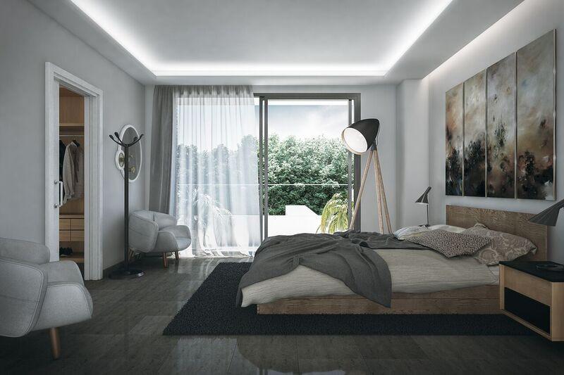On the ground floor there is a double guest bedroom and bathroom located off of a double height entrance hall and leading into the flexible living space where owners can opt for a closed or open plan kitchen which in turn leads on to the dining area and lounge before opening up to the terrace and decked swimming pool.