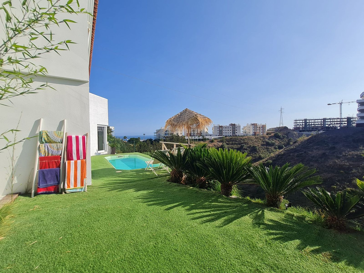 Spacious semi-detached house located in the prestigious Reserva del Higuerón private complex, on the border between Benalmádena and Fuengirola, a step away from all services and Carvajal beach with its beautiful promenade and restaurants. The suburban train station is 100 meters away and there is a free bus service for the residents of the complex.