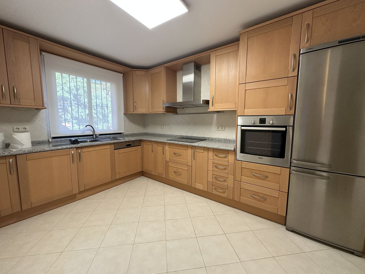 This Benahavis apartment is located in the prestigious complex. Built in 2005, these apartments were designed with high ceilings and generosity of space. This 3 bedroom property in Monte Halcones commands an elevated position with south-west orientation overlooking the coast below. With secure underground parking, convenience is key, with an elevator which rises up to open right outside the front door. Entering this home one is immediately struck by the elegance and comfort within this 3 bedroom apartment. Beautiful polished marble floors give a sumptuous base upon which the elegant furniture sits. To the left of the front door the kitchen is located, with plenty of granite worktop space and multiple wooden cupboards, making it perfect for clean and tidy food preparation.
