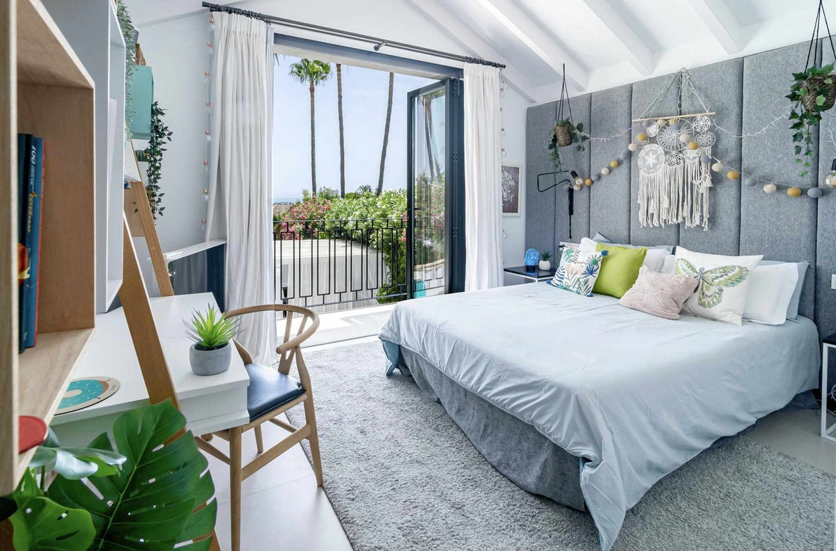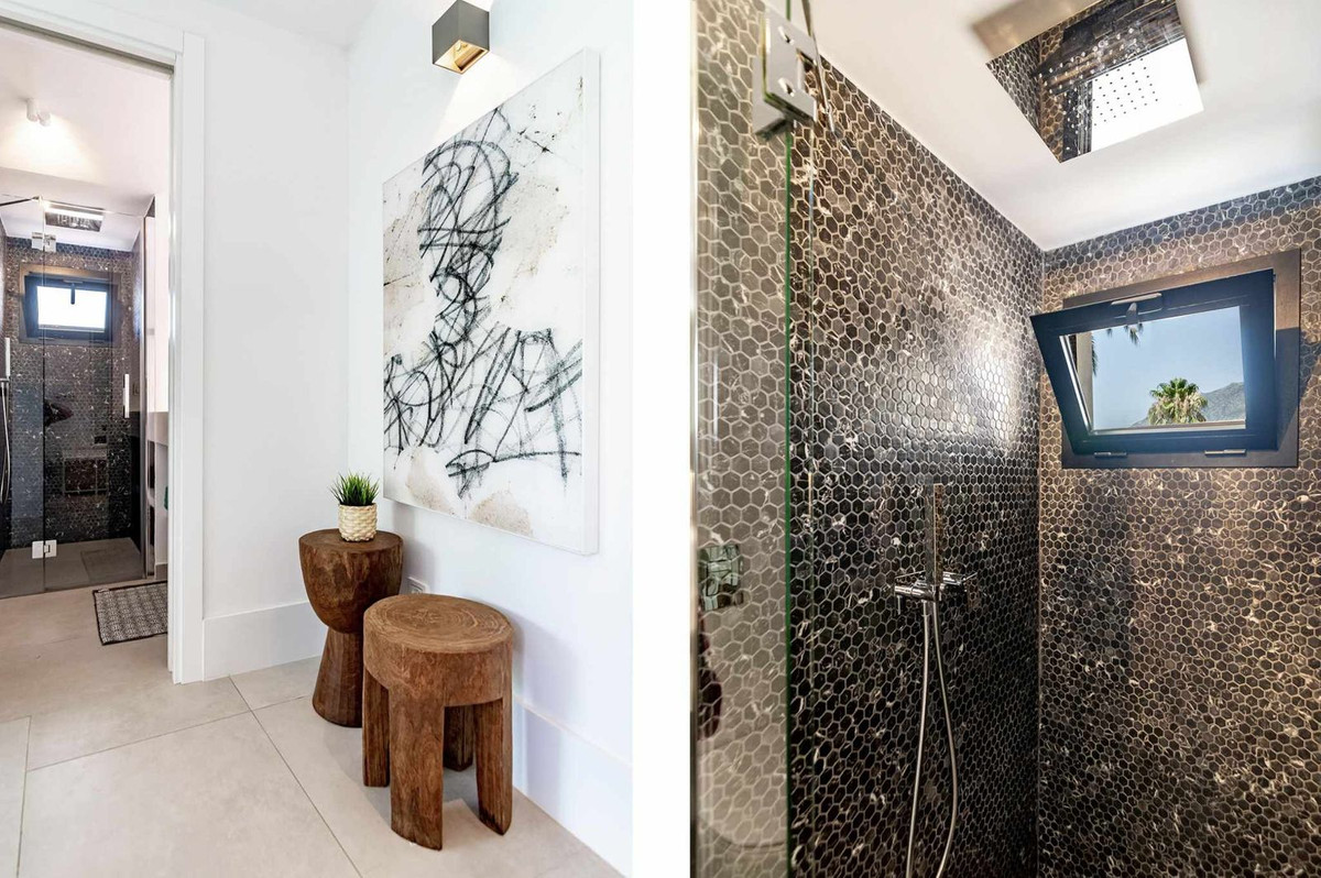 This stunning villa in the heart of Nueva Andalucia is equipped with a Sonos sound system throughout the property and garden, underfloor heating on the ground floor and in all bathrooms, as well as solar panels supplying energy for the pool heater and water boiler.