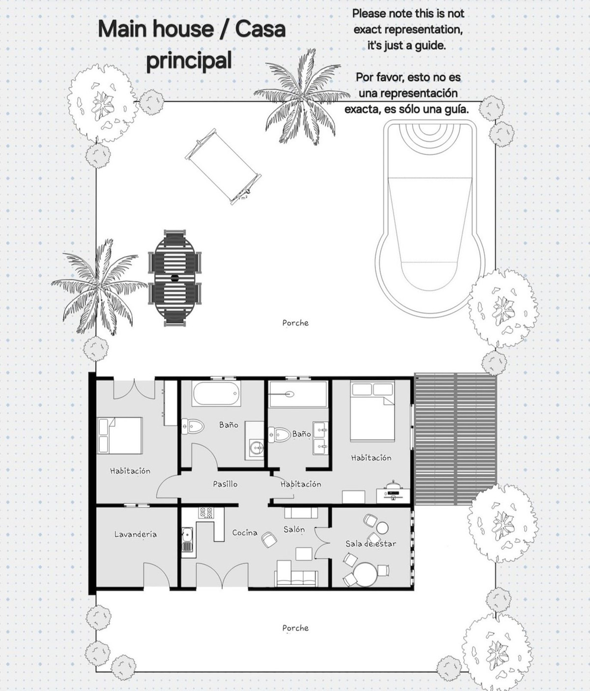 The casita is located to side of the property in an elevated position. The casita was reformed recently with 2 bedroom, kitchen, lounge and bathroom.