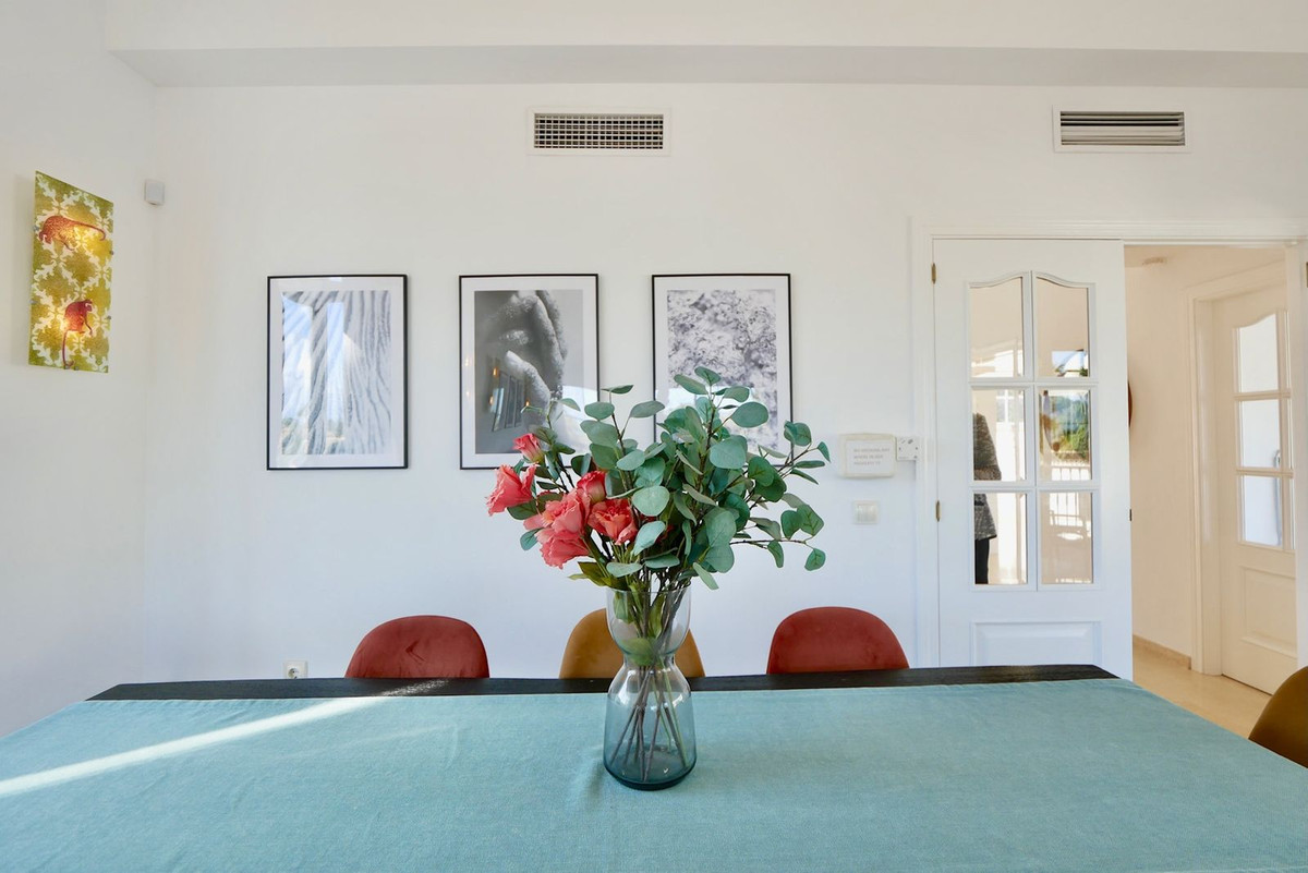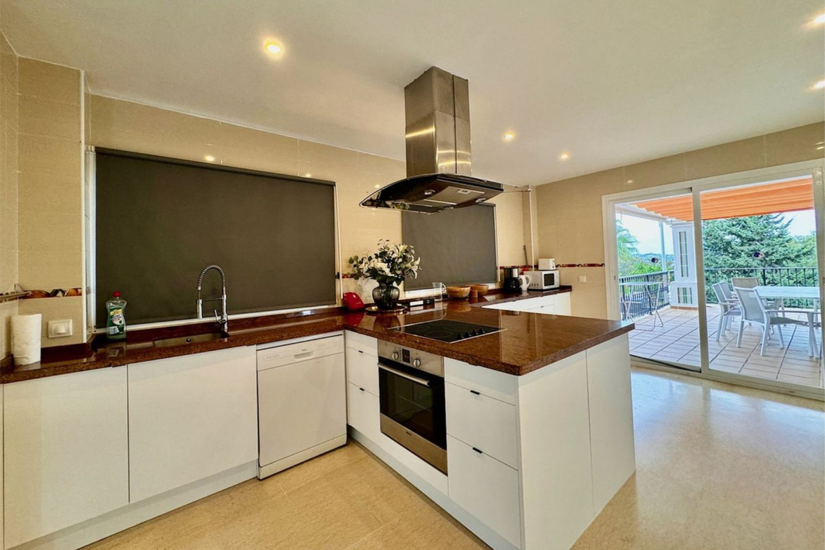 In the beautiful and attractive town on the Costa del Sol, La Cala de Mijas (Torrenueva), you will find this fantastic three-story villa with views of the Mediterranean Sea and Spain's Costa del Sol. Just half an hour from Malaga airport by car, you drive two minutes from the main road up towards the mountain and enter a large entrance hall with high ceilings, from where you have access to the villa's bright ground floor and upper floor, lower floor, stylish kitchen, living room with high ceilings, swimming pool and lovely terrace. With a total of 6 bedrooms ( 3 ensuits )4 bathrooms, 1 guest toilet , 2 Living rooms, two kitchens, two entrances, a garage with space for one car and a double garage with space for two cars, there is guaranteed room for the whole family and friends. The home can be divided, with a separate lower floor with three bedrooms, three bathrooms, private entrance and double garage, kitchen and living room. For example, you can have two families stay, rent the home to two families, or rent it to one family, while you yourself stay separately in the villa, with separate garages and entrances from two different streets. On the ground floor you will find one room and one bathroom with living room, kitchen, terrace and pool. If you go up to the first floor, you will find two en-suite bedrooms, where you can wake up with a view of the Mediterranean Sea. The location is absolutely top! Walking distance to some of the best beaches on the coast, the sea, shops, restaurants and driving distance to popular areas such as Marbella and Málaga The villa is centrally located, where you don't hear city and road noise, but get the most beautiful views of various other villas, natural areas, mountains and sea That way you are private, but close to everything . Book a viewing and experience this bright, spacious and beautiful three-story villa with your own eyes