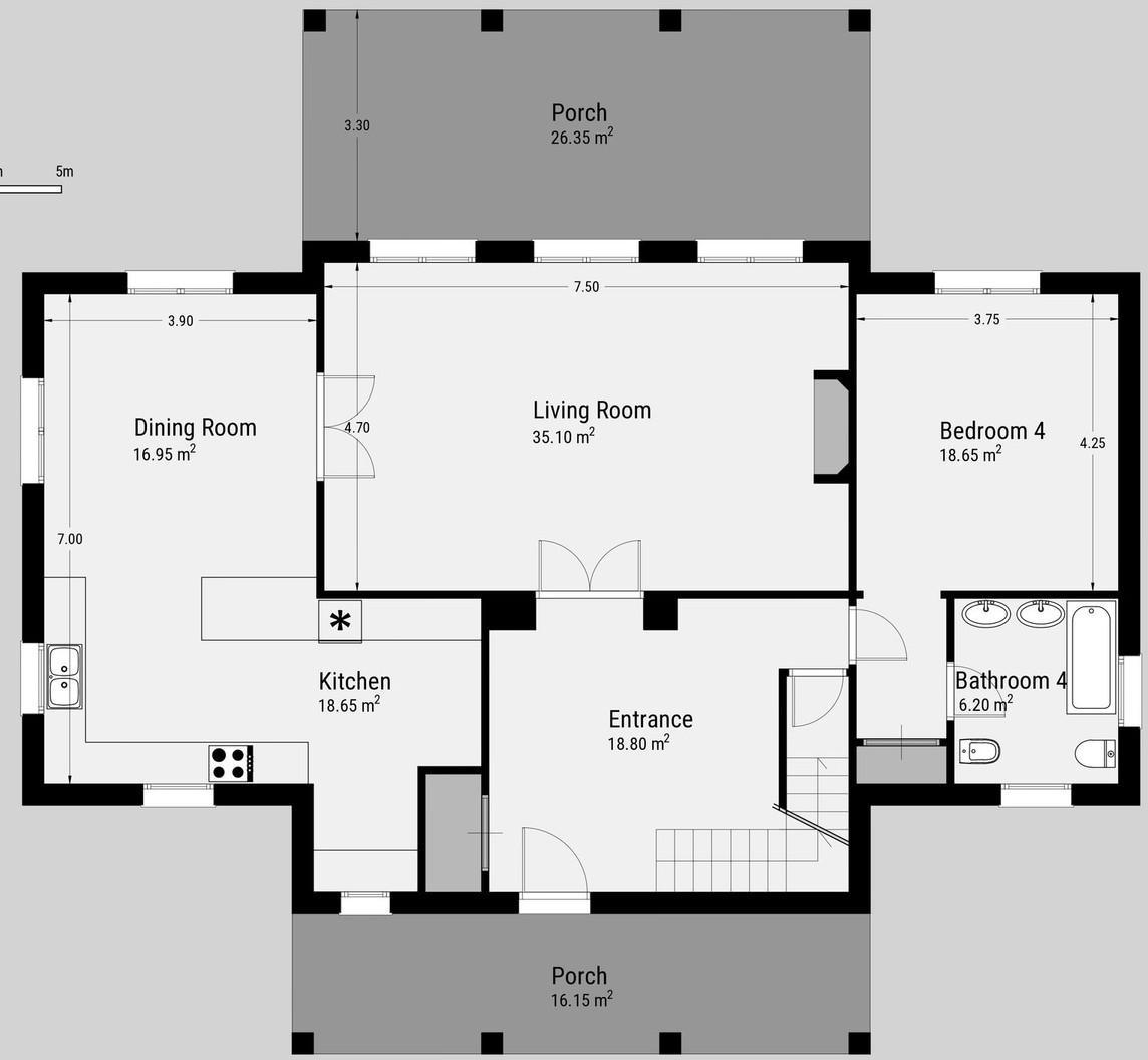 Upstairs, the luxurious master suite features a private terrace with open sea views, a generous en-suite bathroom and ample wardrobe space. Two additional en-suite guest bedrooms ensure privacy and comfort for family and guests.