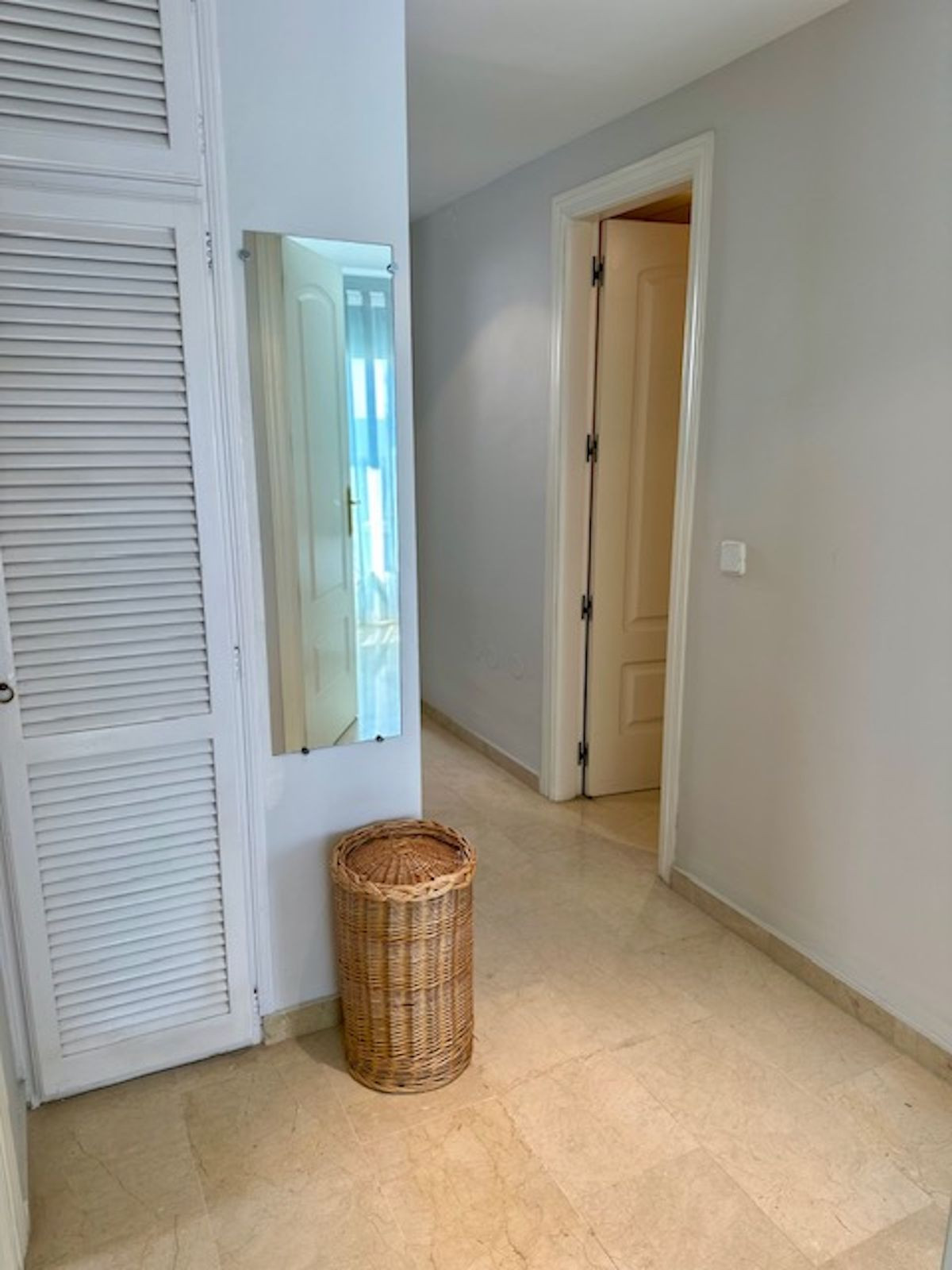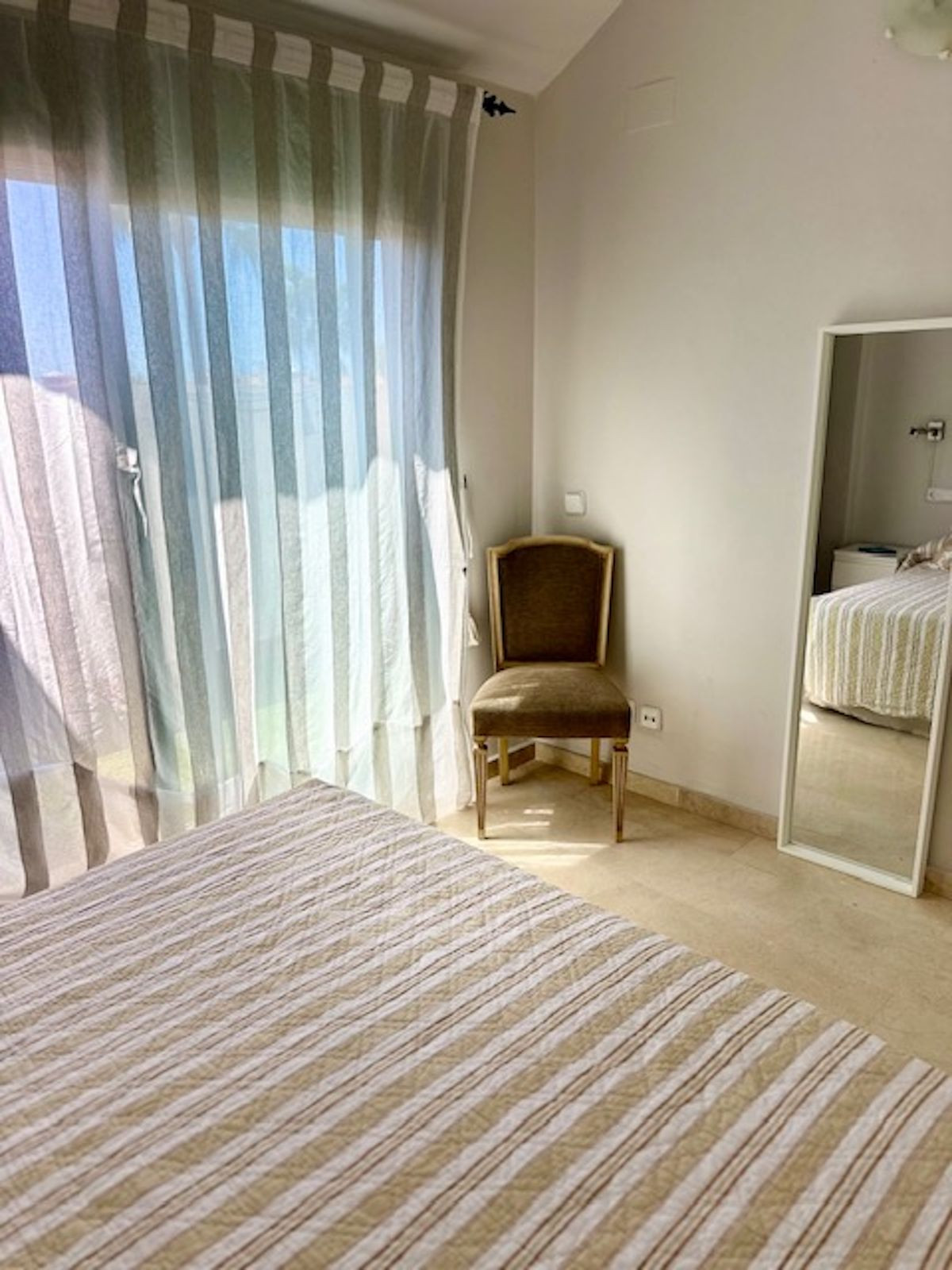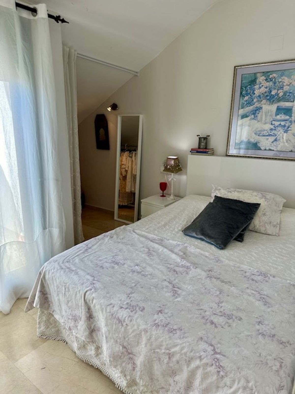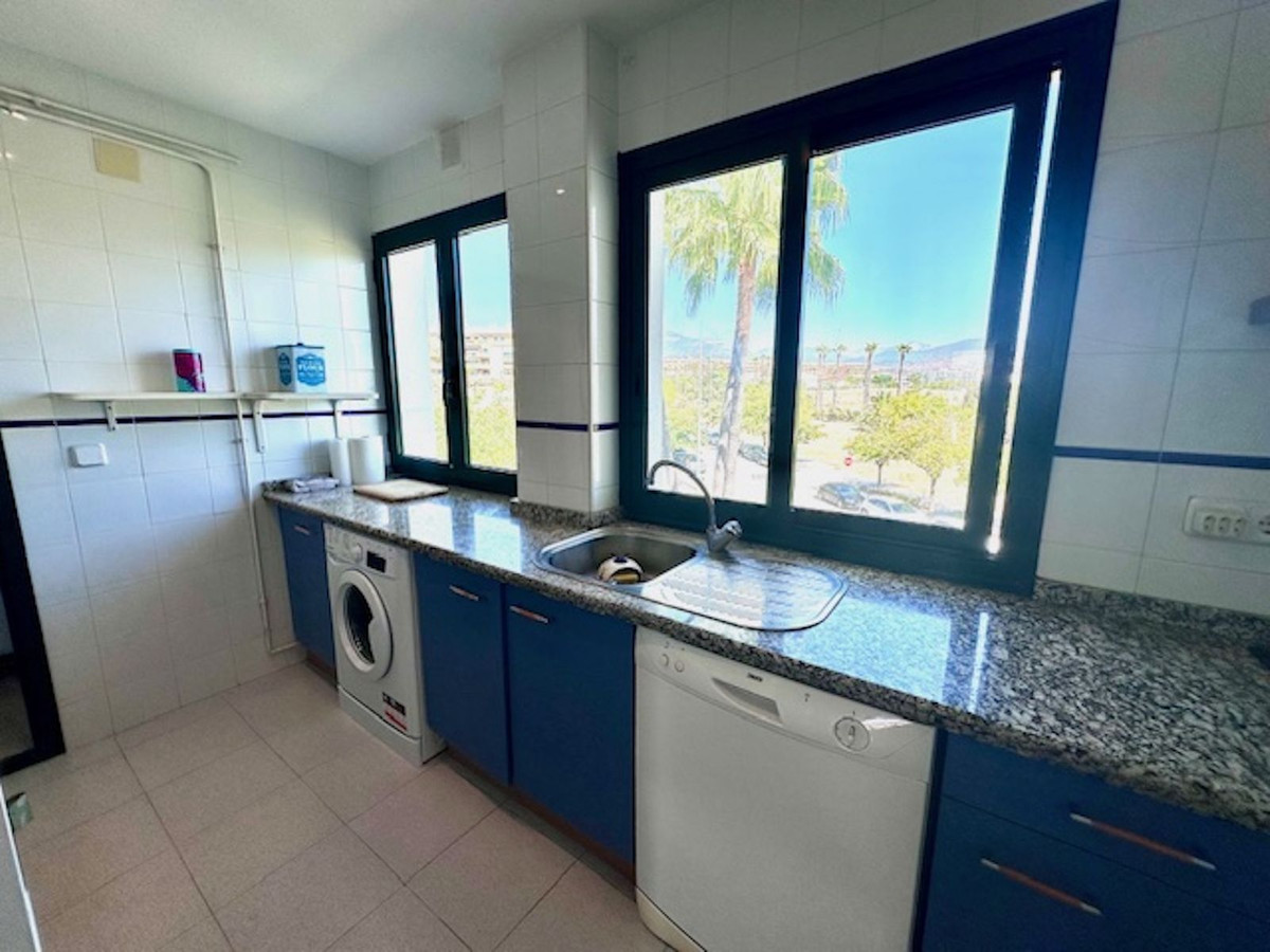 Spacious entrance hall, with a kitchen to the right overlooking the complex and exceptionally bright, with windows and natural light. The laundry area off the kitchen has been converted into a bedroom with a 90-cm bed. This makes it an option for an additional guest!