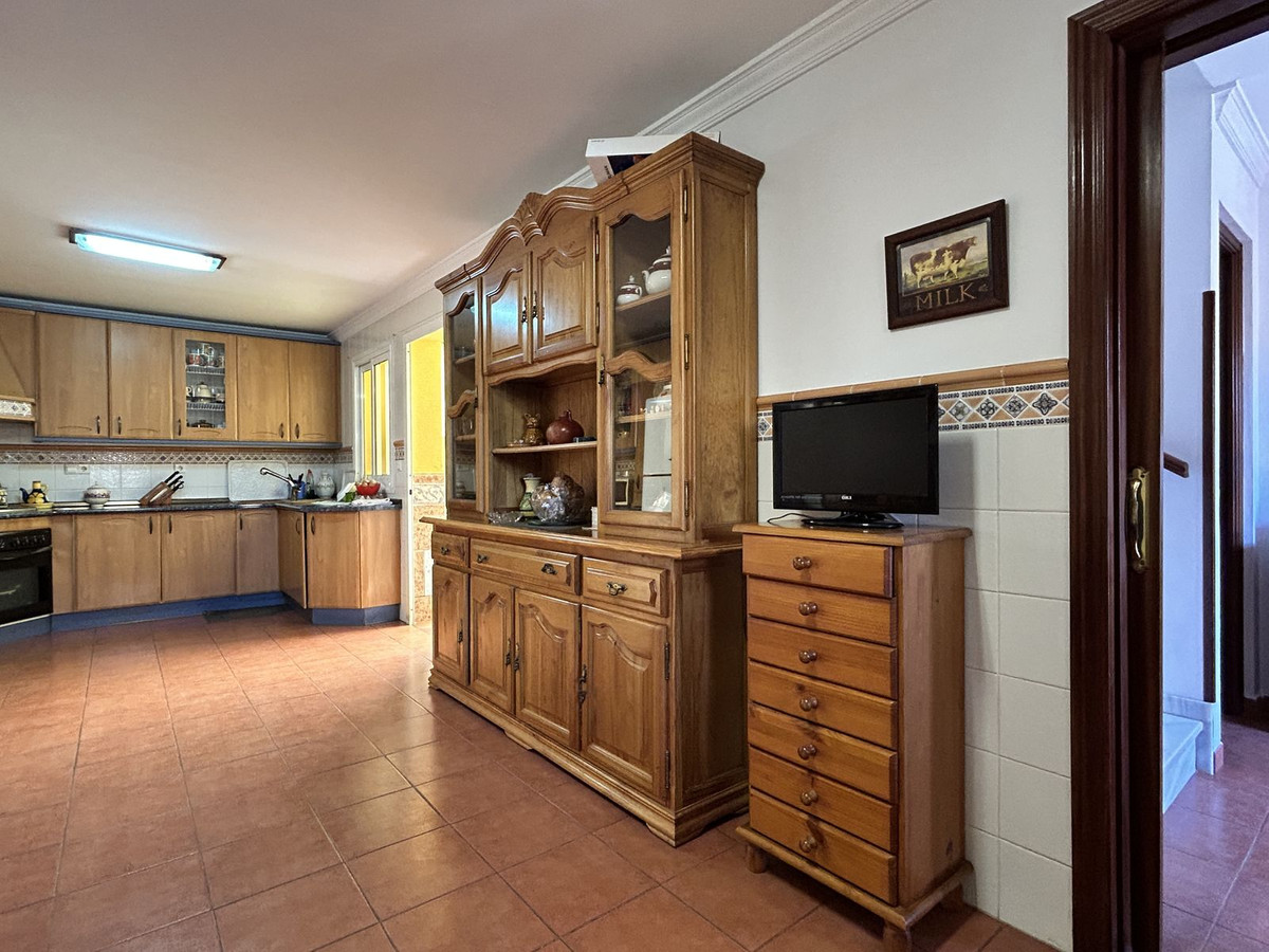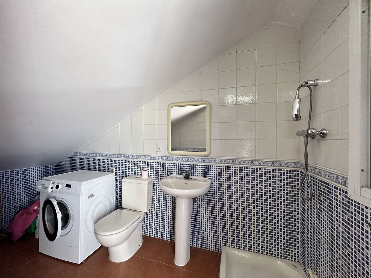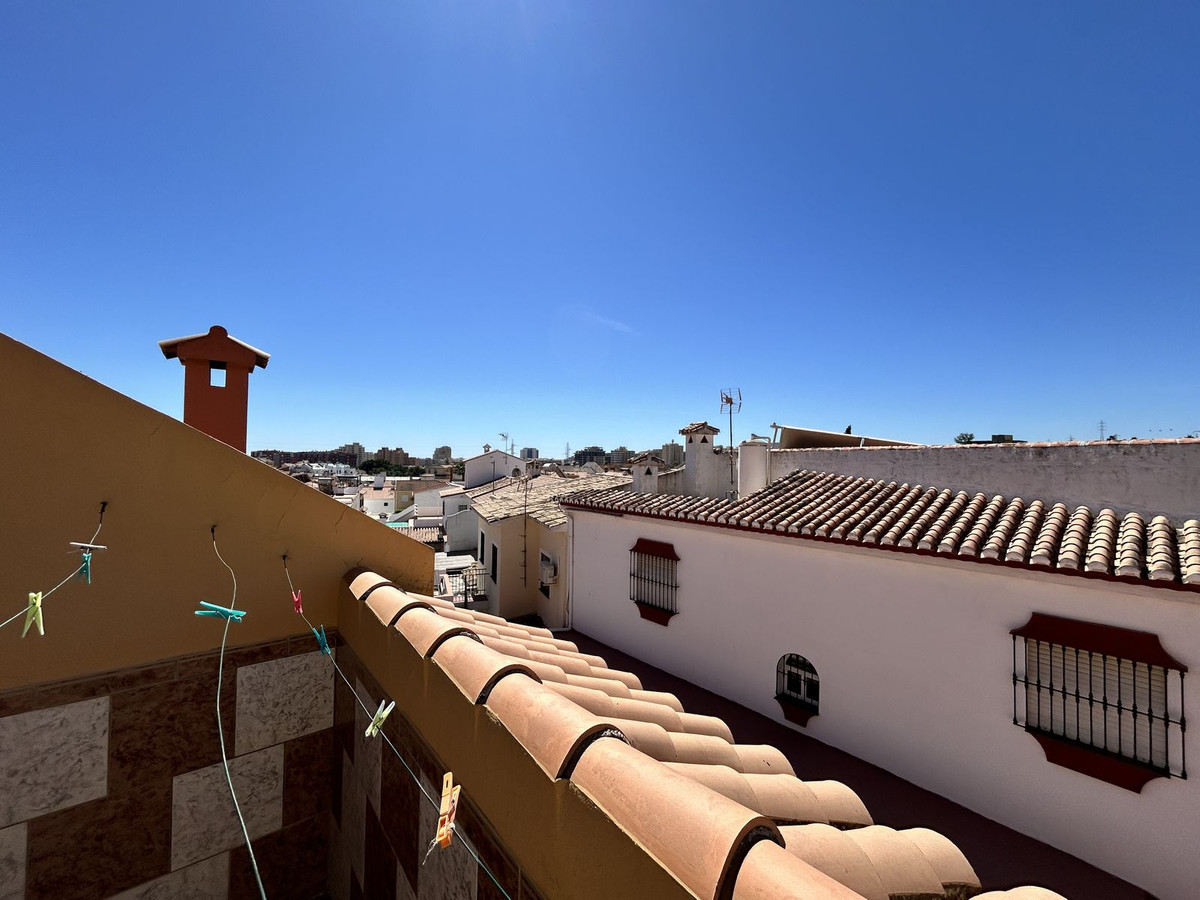 A spacious semi-detached house for sale located in the central area of Los Pacos, Fuengirola. The property has 4 bedrooms, 2 terraces, 3 bathrooms, a guest toilet, an entrance porch, an interior patio, and a private parking space.