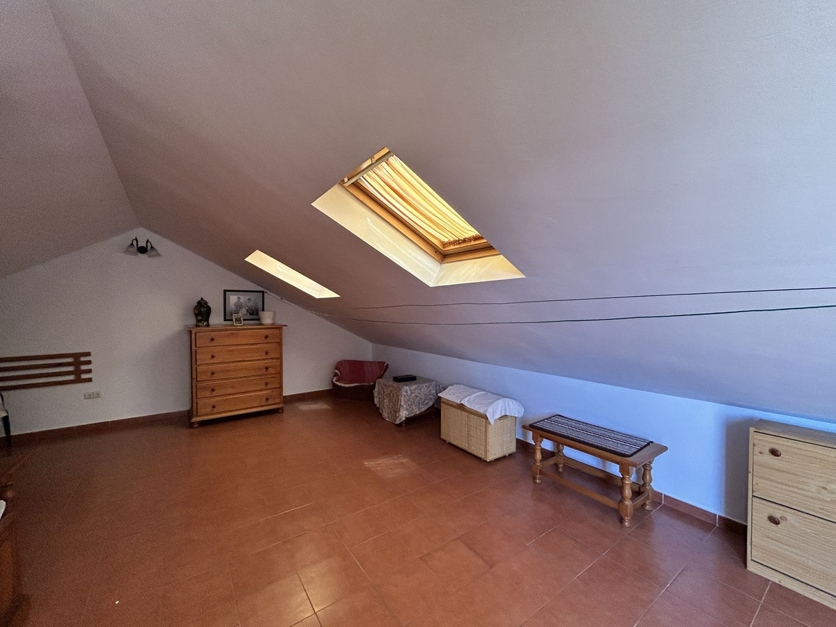 The second floor is open-plan and has dormer windows. It also has a bathroom with a shower and access to a terrace with unobstructed views.