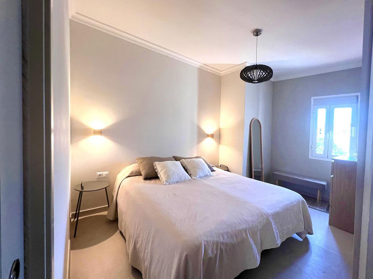 This beautifully decorated two bedroom, two bathroom apartment is located in the very popular Puerto Banus marina in Marbella, just 20 meters from the beach. The views are of the Plaza de Antonio Banderas square which also has the “El Corte Ingles” department store, that focuses on top brands.